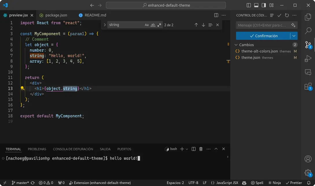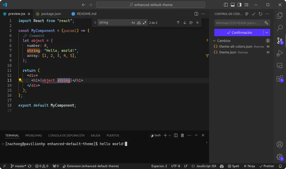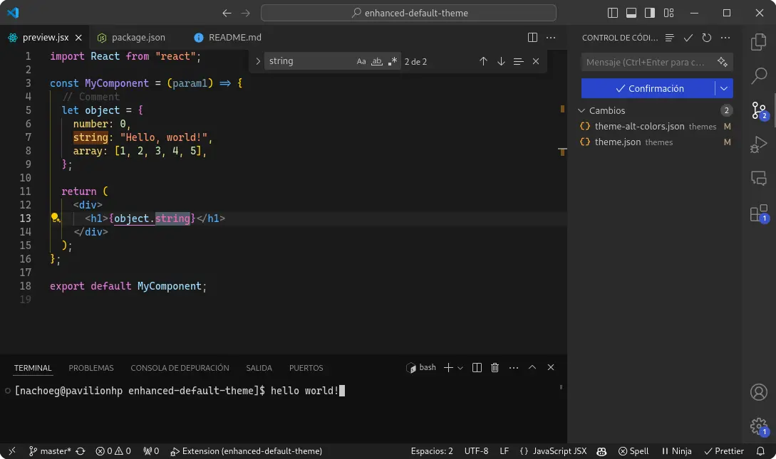 Tema de Visual Studio Code con mejoras respecto al tema por defecto.